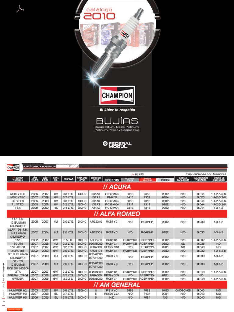 Indice Manual Ordenes De Encendido Bujias Champion Boletines Tecnicos Champion Aplicaciones Por Armadora Rosca Del Casquillo En Motores Ford Pdf Free Download